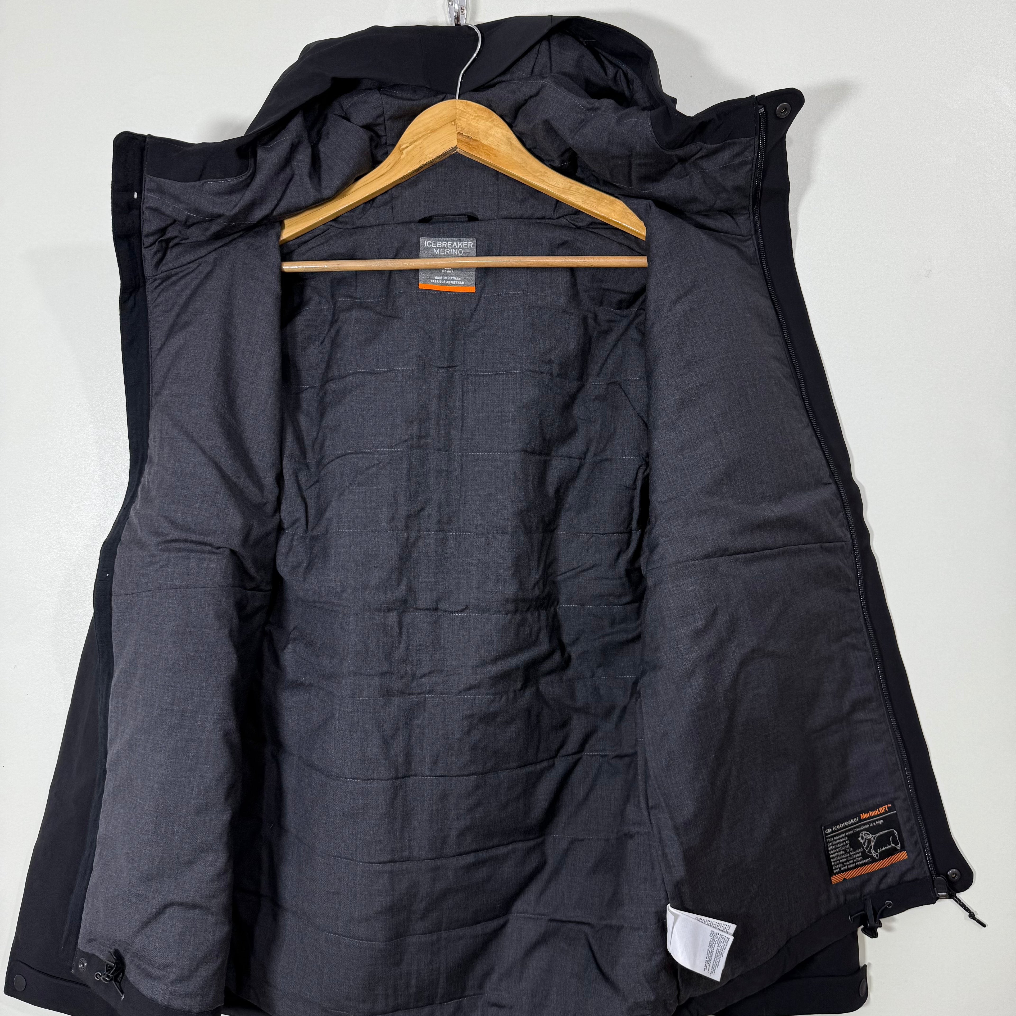 ICE BREAKER MERINO WOOL WINDBREAKER JACKET WITH HOOD BLACK COLOUR