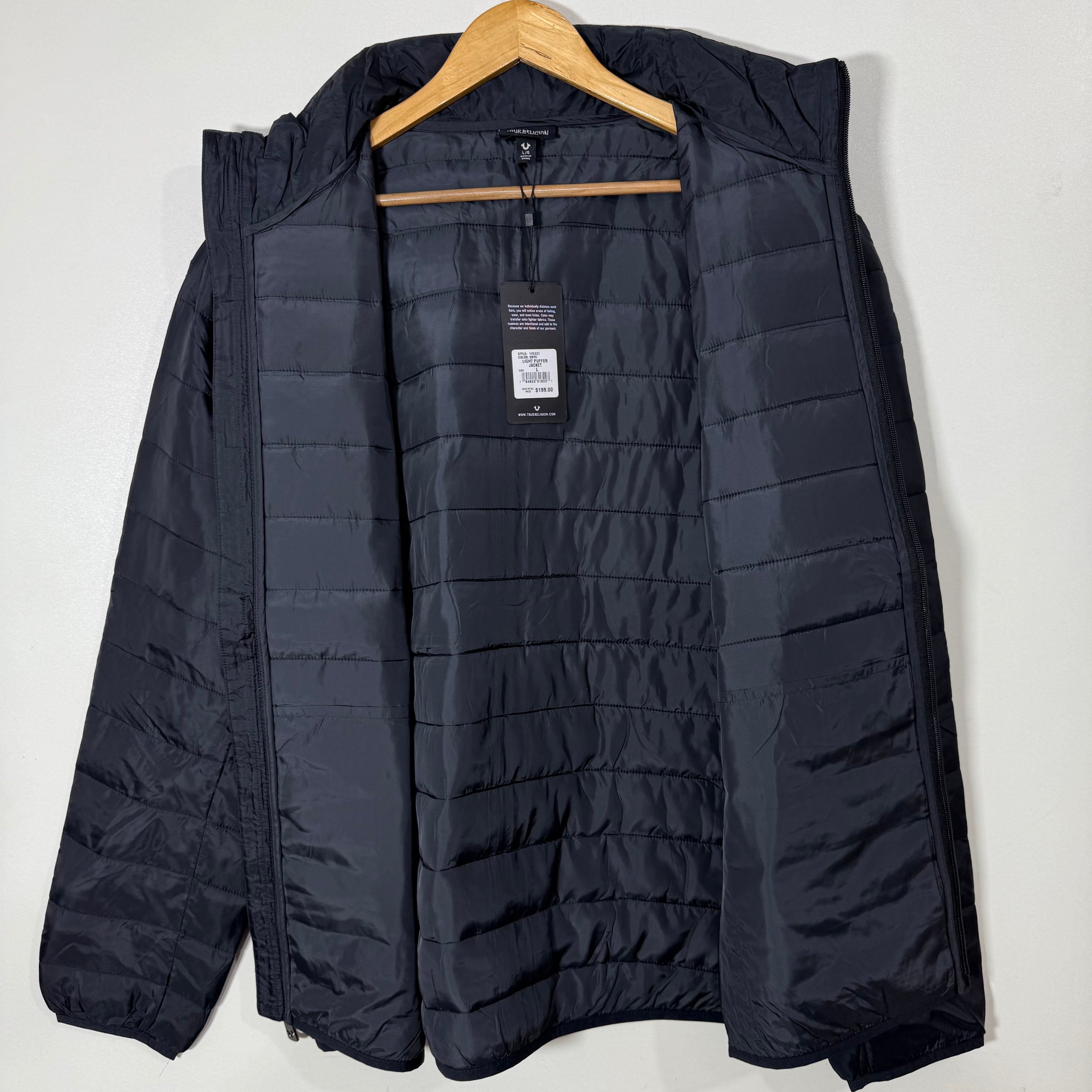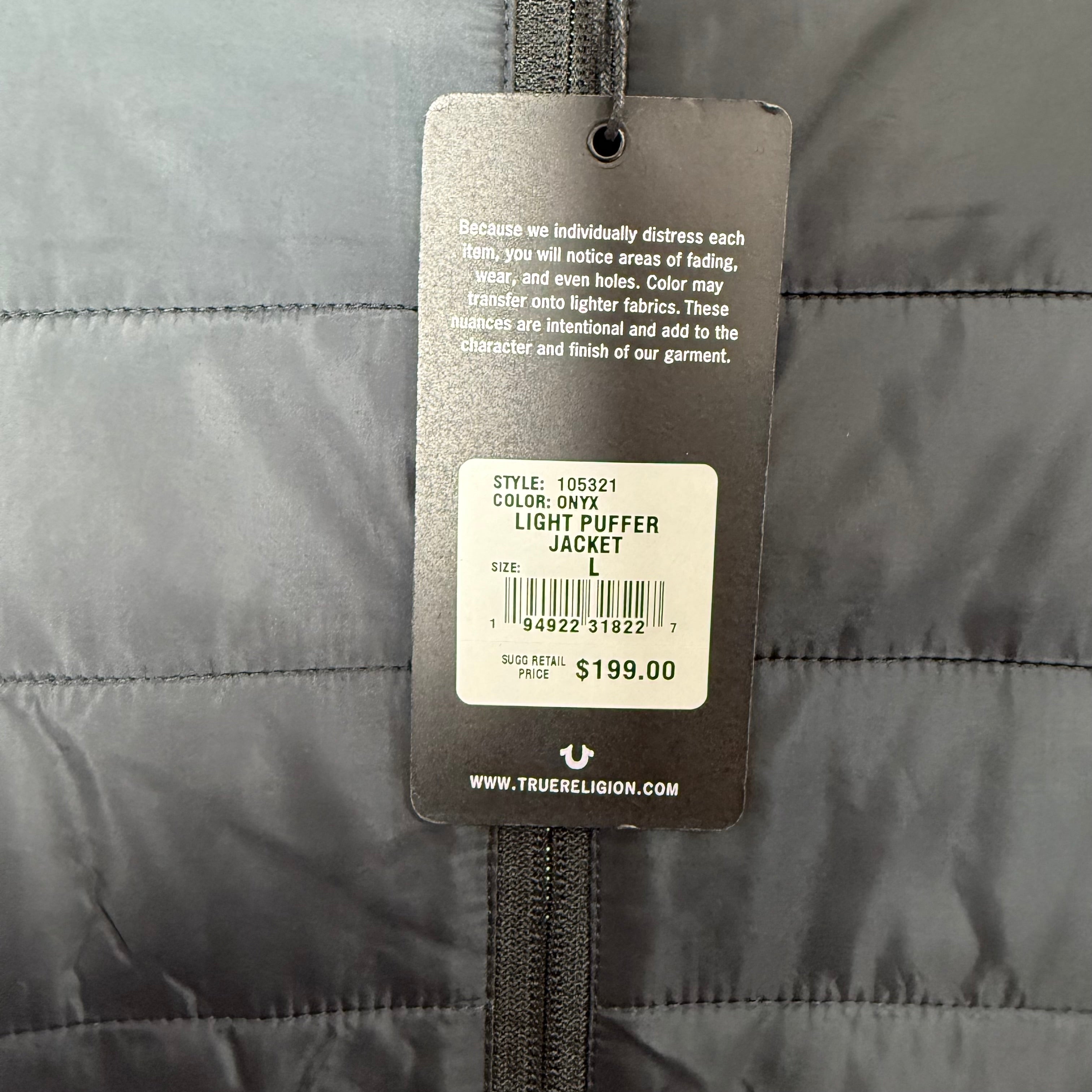 TRUE RELIGION LIGHT PUFFER JACKET BRAND NEW BLACK COLOUR