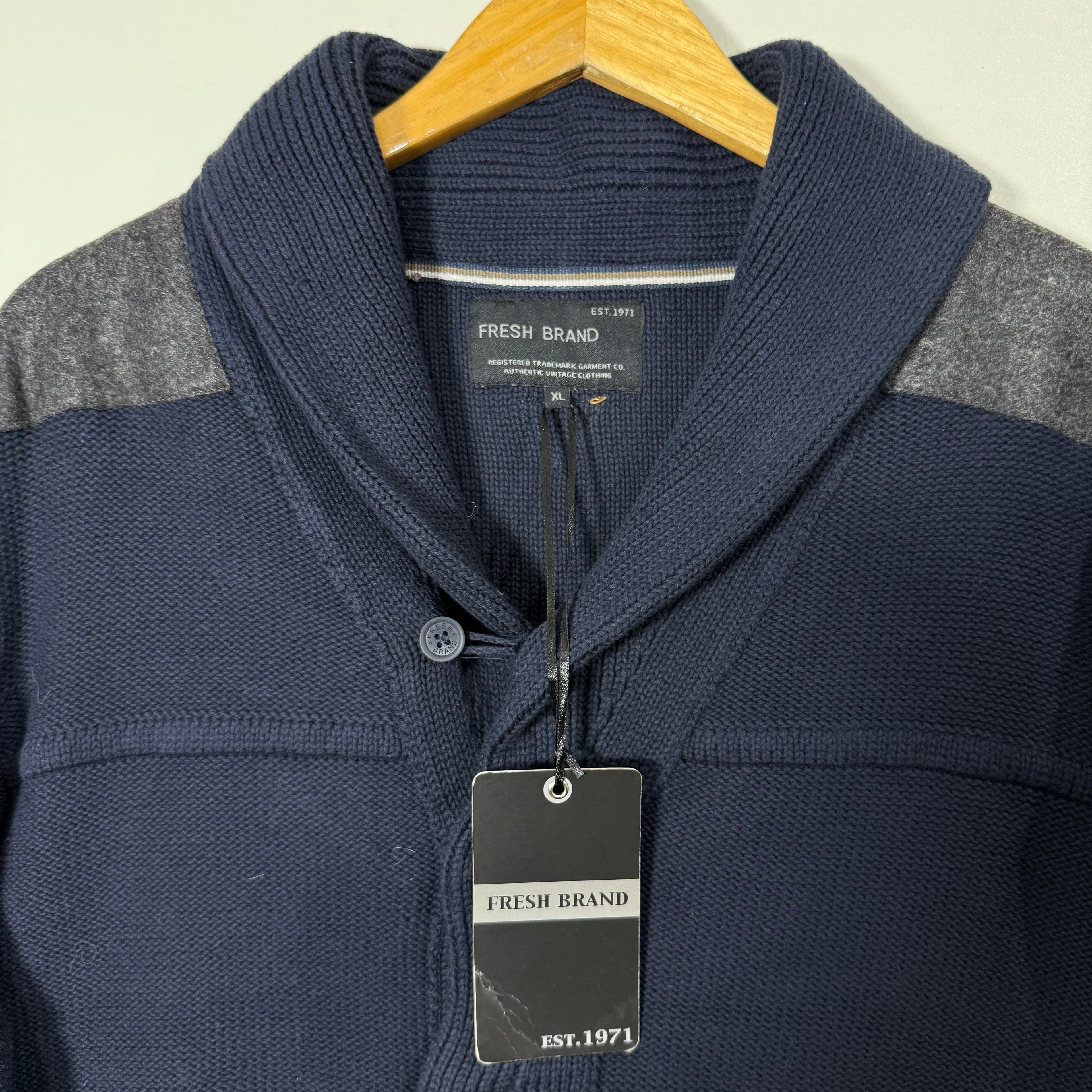 FRESH BRAND SHAWL COLLAR KNITWEAR SWEATER BRAND NEW BLUE COLOUR